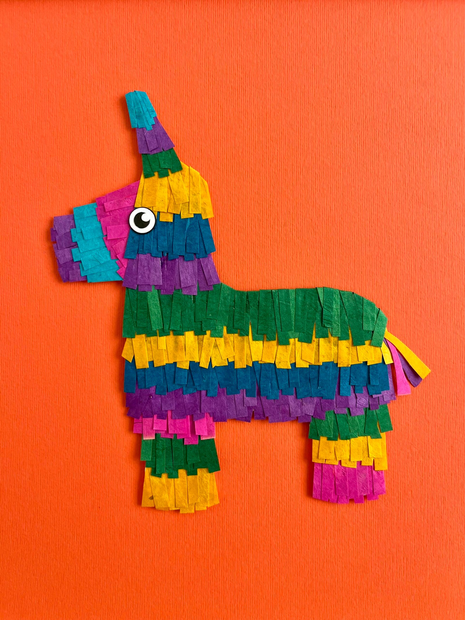 La Piñata est une œuvre originale entièrement réalisée à la main, à partir de papier népalais fait main à base de coton recyclé. Chaque frange est découpée une à une, puis assemblée avec précision pour recréer l’effet festif et texturé d’une vraie piñata.
